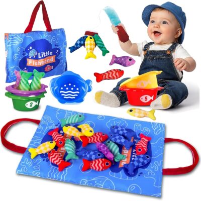 SUATK Montessori Toys for 1 Year Old, Baby Toy Educational Fabric Fishing Game for Kids Color Sorting Matching Game Learning Toys for Baby Boys Girls Presents