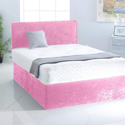 Crushed Velvet Divan Bed | Memory Foam Spring Mattress | Matching Plain Headboard (Pink, 3FT- 0 Drawer)