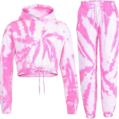 A2Z 4 Kids Girls Tie Dye Tracksuit Crop Hooded Sweatpants Top Bottoms Jogging Suit Joggers Outfit Set Age 5-13 Years