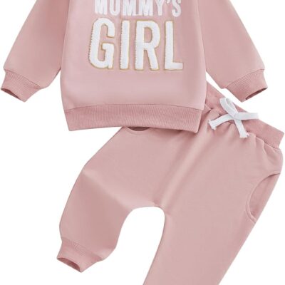 Bufarromio Toddler Baby Girls 2Pcs Outfits Mummy’s Girl Letter Embroidery Long Sleeve Sweatshirt Elastic Waist Long Sweatpants Clothes Set