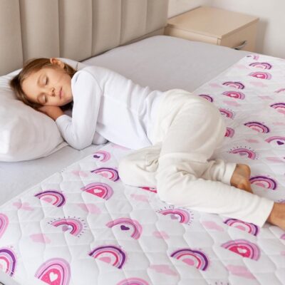 Lynmark® Kids Potty Training Bed Pad – Toddler & Single Size Bed, Waterproof Mattress Protector for Bedwetting & Incontinence, Lifesaver Whilst Night Time Toilet Training, Easy To Wash & Dry, Rainbow