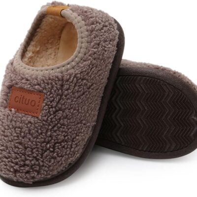 RVROVIC Boys Girls House Warm Slippers Fuzzy Winter Soft Slippers for Kids Fleece Non-slip Cute Animals Home Indoor Shoes
