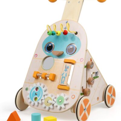 Jacootoys Wooden Activity Walker, Adjustable Speed Toddler Push Walker Activity Center Toy, Wooden Baby Walker Push and Pull Learning Walker with 7 Educational Activities for Boys Girls 1 2 3 Year
