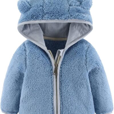 2024 Fashion Newborn Infant Baby Girls Boys Jacket Bear Ears Hooded Outerwear Zipper Warm Fleece Winter Coat Heated Coats for Boys (Blue, 0-6 Months)