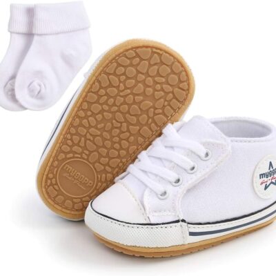 Blaward Infant Baby Girl Boy Canvas Sneakers Unisex Toddler Anti-Slip First Walker Crib Shoes with Socks Gift Set for 0-18Months