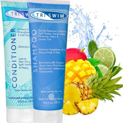 TRISWIM – Chlorine Removal Hair Care Bundle, After Swim Care Shampoo and Moisturizing Conditioner, Anti-Chlorine Hair Protection For Swimmers, Removes Green Tint, Vegan & Cruelty Free (251+251 ml)