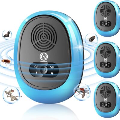 Nunemosk Ultrasonic Pest Repeller 4 Modes with Night Light, 4 pack Indoor Electronic Repellent Plug in Pest Control for Mice (300, Grams)