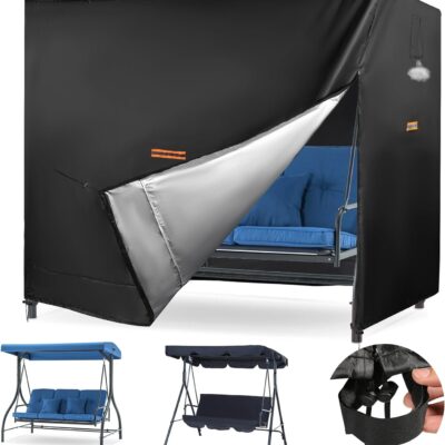 Outdoor Swing Cover 3 Triple Seater Hammock Cover Garden Swing Cover Garden Hammock Glider Chair Cover Patio Furniture Chair Covers Waterproof UV Resistant Swing Canopy Cover All Weather Protection