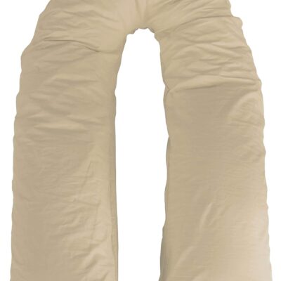 Adam Home 12 Ft Plain Dyed U Body Pillow and Pillow Case Pregnancy Maternity Body Back Support (Pillowcover Only, Beige)