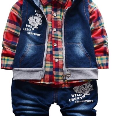 Spring Autumn Baby Boys 3pcs Clothing Set Cotton Shirt Jeans Denim