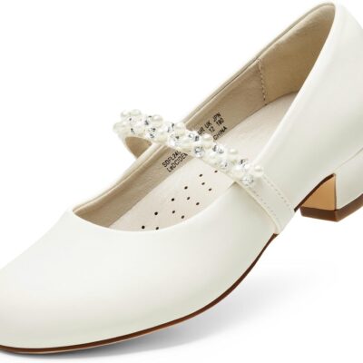 DREAM PAIRS Girls Party Shoes Low Heels for Little Big Girl Mary Jane Shoes with Pearl Rhinestones Flower Girl Pumps Princess Wedding