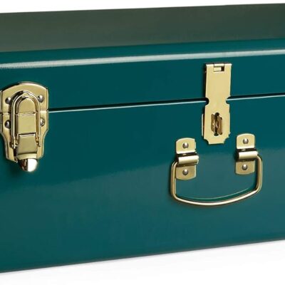 Beautify Storage Trunk, Teal Stainless Steel Storage Chest w/Gold Detailing, Stylish Bedroom Chest Organiser w/Lockable Lid & Handles, Sturdy Multi-Purpose Bedding, Blanket & Toy Box