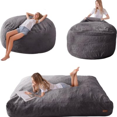 MAXYOYO Giant Bean Bag Chair Bed for Adults, Convertible Beanbag Folds from Lazy Chair to Floor Mattress Bed, Large Floor Sofa Couch, Big Sofa Bed, High-Density Foam Filling, Machine Washable