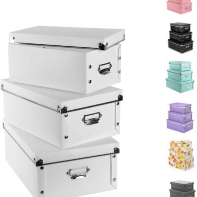 XUCHUN Decorative Storage Box with Lids,Set of 3 Waterproof Foldable Plastic Box Multiple Sizes for Socks/Office(White)