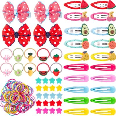 154pcs Girls Hair Accessories Set, Kids Hair Clips Hair Ties Snap Barrettes Hair Bows for Baby Little Girls