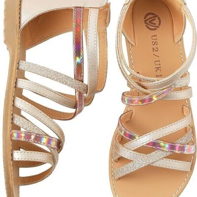 FUPPIA Girls Sandals Princess Open Toe Strappy Sandals Zipper Gladiator Flats Sandals Summer Flat Shoes
