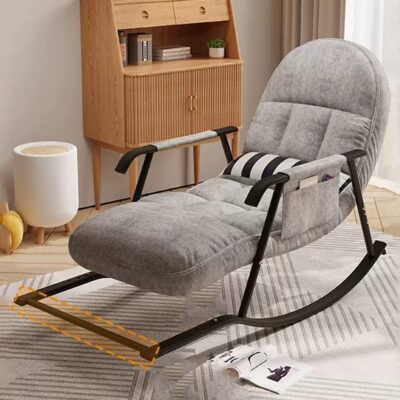 Modern Rocking Chair Recliner with Adjustable Back and Armrest Upholstered Glider Rocker Lounge Chair for Balcony Removable Washable Cover Comfy Lazy Chair for Living Room Light Gray