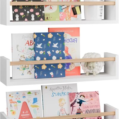 Fixwal Nursery Bookshelves, 16.5 Inch Floating Shelves for Wall Set of 3, Kids Bookshelf for Bedroom, Baby Nursery Decor (White and Natural)