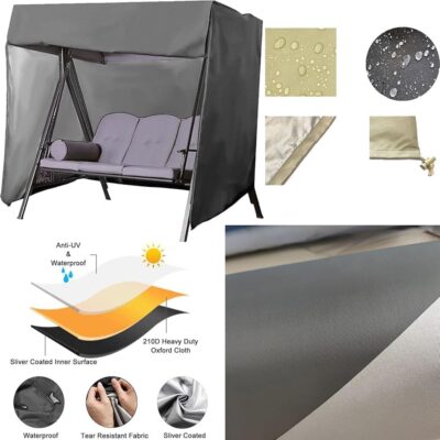 Outdoor Patio Swing Cover 3 Seater Waterproof 420D Garden Glider Canopy Cover Sunproof Swing Glider Chair Cover for Outdoor Garden Grey Oxford Cloth 220×125×170cm