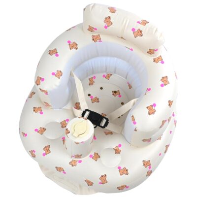 Upgraded Inflatable Baby Seat for Babies 3-36 Months, Baby Inflatable Seat with 3-Point Harness/Built in Air Pump/Waterproof/Back Support/Learning to Sit/Blow Up Floor Seat, Gift for Newborn (Bear)