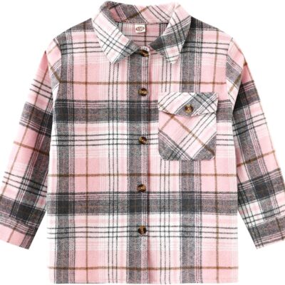 Qiraoxy Kids Toddler Boys Girls Plaid Jacket Long Sleeve Button Shirts Coats Blouse Jacket Cotton Warm Tops Jacket Fall Winter Clothes Outfits 2-8 Years