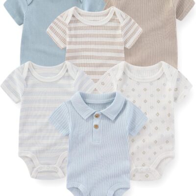 JELYLOVE Short Sleeve Baby Boy Girl Bodysuits 6-Pack Casual Cotton Soft Infants Outfit New born Clothes
