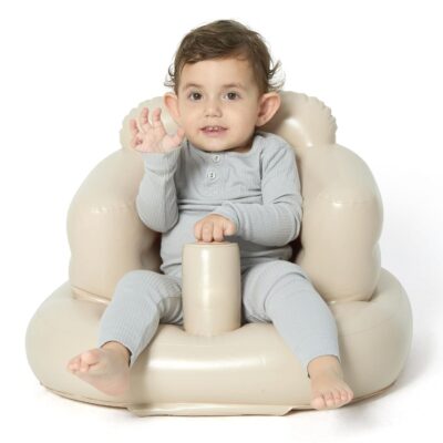 MINK Inflatable Baby Seat with Built-in Pump – Floor Seat for Infants 3 Months & Up, Blow Up Baby Chair,Ideal for Sitting Up and Learning to Play (Khaki)