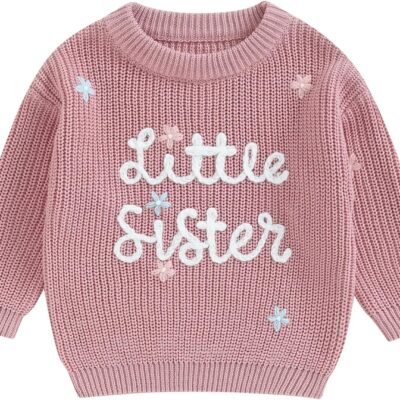 Newborn Baby Girl Warm Clothes Toddler Infant Girls Fall Winter Outfits Long Sleeve Knit Sweater Knitted Pullover Jumper Top Sweatshirt Hoodies Chunky Knitwear Embroidery
