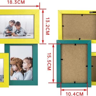 Innoteck Essentials Contemporary 4 in 1 Collage Wooden Gallery Photo Frame in Yellow-Green with Four 4 x 6 Inch Displays Puzzle horizontal and vertical – Wall hanging and Desktop Family Photo Gallery