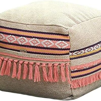 OLOTU Breathable and Wear-resistant Foot Stool Hand Washable Linen Storage Ottomans Floor Cushion with Tassel Indoor Foot Rest