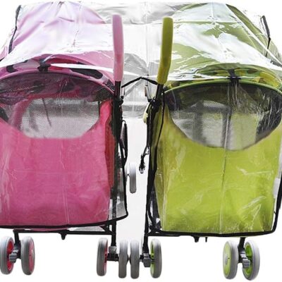 Universal Stroller Raincover Twins Strollers Double Side by Side Baby Stroller Transparent PVC rain Cover for Pushchair Pram Buggy Rainproof Windproof Rain Cover with Canopy and Zipper Door