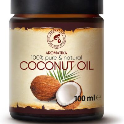 Unrefined Coconut Oil – 100% Pure Natural Cold Pressed 100ml Glass Bottle – Cocos Nucifera Oil – Indonesia – Benefits for Skin Hair Face Body
