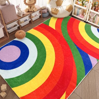 USTIDE Colorful Rainbow Rug Cute Kids Rug Washable Soft Nonslip Area Rug Large Kids Carpet Nursery Rug Bedroom Rug Washable Girls Rug Shaggy Soft Rug,120x180cm