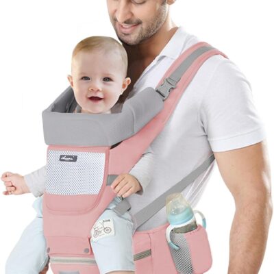 IULONEE Baby Carrier with Hip Seat Ergonomic Toddler Carriers Backpack Baby Shoulder Carrier Adjustable Front and Back Carry for Newborn 3 Months to 3 Years(7-45lbs) (Pink)