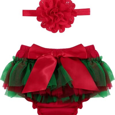 Oyolan Baby Girls Ruffled Tutu Bloomers Diaper Cover Panties with Flower Headband Set Photo Shoot Prop Outfits