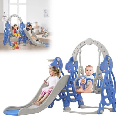 HENGMEI Kids Slide, Toddler Climber and Swing Set 4 in 1, Toddler Slide with Basketball Hoop Garden Slide Toy Outdoor and Indoor for Children Age 1-3, Blue 175x140x120cm, Type B