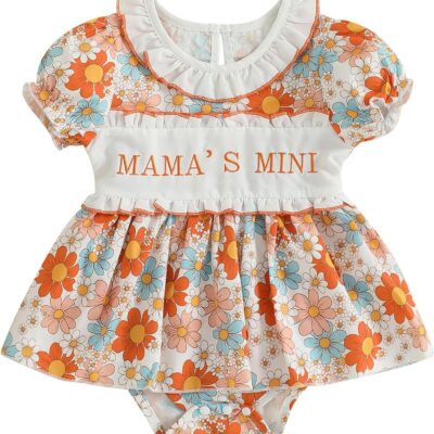 XIXIMAON Cute Baby Girl Summer Clothes Babydoll Collar Short Puff Sleeve Letter Embroidery Ruffle Romper Dress Mamas Mini Floral Jumpsuit Toddler Outfits