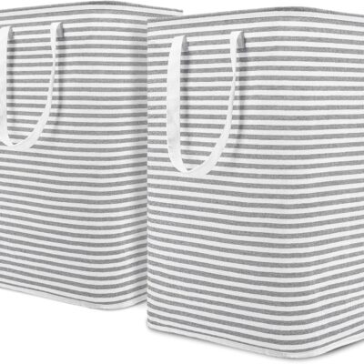 DOKEHOM 80L [2 Pack] Freestanding Laundry Hamper with Handle, Collapsible Large Cotton Storage Basket for Clothes (Grey)