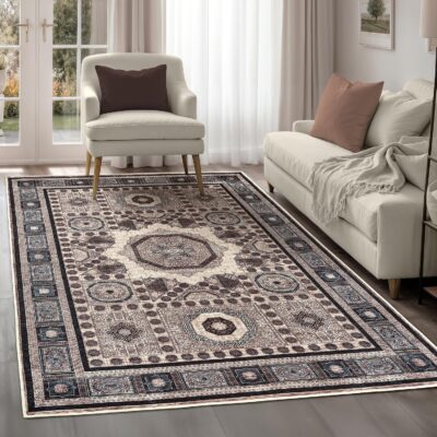 Arty Rugs Machine Washable Rug, 240x330cm, 75% Recycled Cotton, Short Pile, Non-Slip Backing, Non-Shedding, Area Rugs for Living Room, Bedroom, Kitchen, Hallway, Office, Beige & Indigo Blue