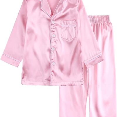 Verve Jelly Kids Toddler Baby Girl Boy Satin Pajamas Set Long Sleeve Button-Down Pajama Shirt Top+Pants Bottoms Sleepwear Outfits