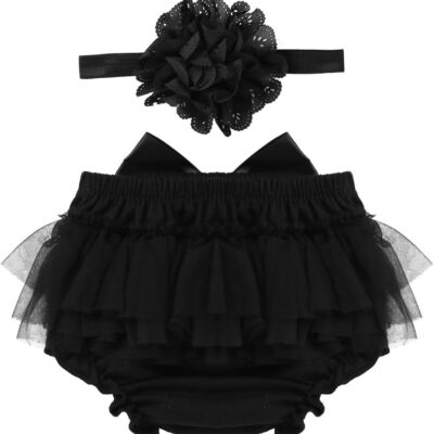 HULIJA Infant Baby Girl Princess Tutu Ruffled Frilly Bloomer Skirts Diaper Cover with Flower Headband Photography Set
