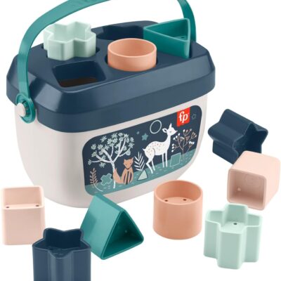 Fisher-Price Stacking Toy Baby’s First Blocks Set of 10 Shapes for Sorting Play for Infants Ages 6+ Months, Navy Fawn, HJP20