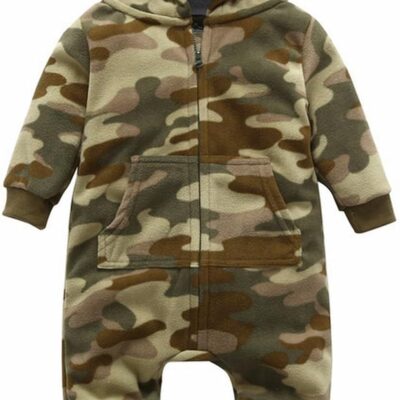 Toddler Baby Boys Girls Causal Camouflage Jumper Fleece Hooded Zipper Romper Fashion Fall Winter Camo Outfit Jumpsuit Toddler Fleece Jacket