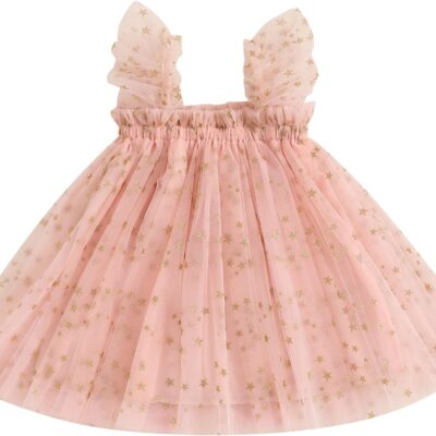 XIXIMAON Toddler Baby Girl Tutu Dress Glitter Star Flower Print Sleeveless Lace Princess Dress Wedding Party Outfit Infant Summer Tulle Sundress