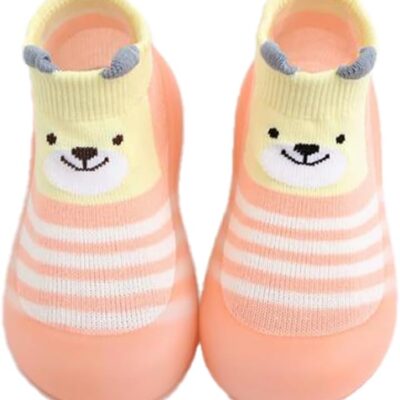 Non Slip Toddler Sock Shoes Baby First Walking Shoes with Rubber Sole Cute Cartoon Infant Slipper Barefoot Shoes Newborn Indoor Outdoor Shoes Socks for 0-24 Months Baby Girls Newborn