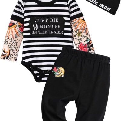 Momkonzz Newborn Baby Boys Clothes Infant Boy Outfits Letter Print Romper Tops Long Pants with 0-9 Months
