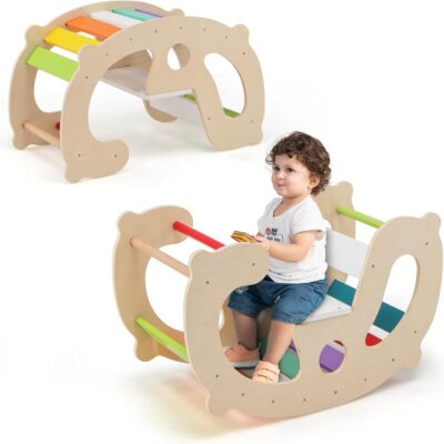 Wooden Rocking Climbing Arch, Montessori Kids Arch Rocker Climber Ladder for Rocking Horse, Children Indoor Outdoor Gym Learning Playset, Playground Climbing Toys for Toddler Gift