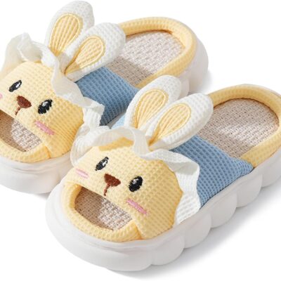 Maeau Toddler Kids Slippers Boys Girls House Slippers Cute Cartoon Animal Open Toe Shoes Linen Indoor Outdoor Slippers Non-Slip House Shoes