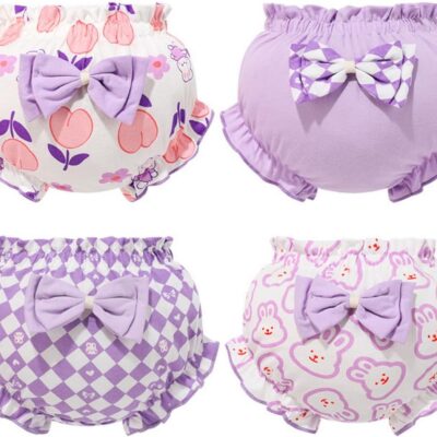 4 Pieces Baby Bloomer Diaper Covers Baby Girl Newborn Underwear Cotton Panties Shorts with Bowknot Baptism Dress Underwear