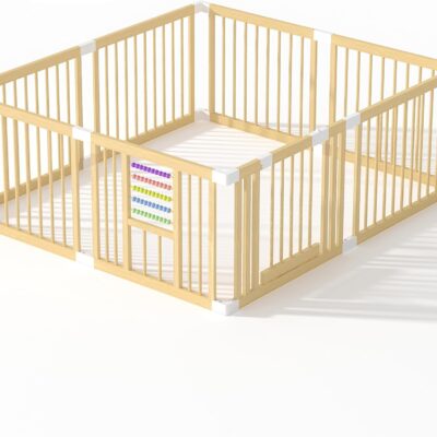 Baby Playpen Wooden Playpen for Babies and Toddlers, Baby Fence with Colorful Acrylic Beads, Baby Fence Play Area with Suction Cups, Extra Large Play Pen Area Indoor(180 * 160 * 61CM) M